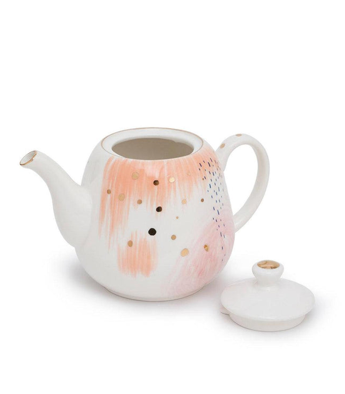 Upgrade your tea-drinking experience with this luxurious and stylish White and Gold Multicolor Tea Pot. The sleek and ergonomic design ensures a comfortable grip, allowing you to pour your favorite teas with grace. The Blush Tea kettle is beautifully designed to offer a high amount of heat retention while keeping its outer body cool to the touch and at perfect temperature for longer periods.