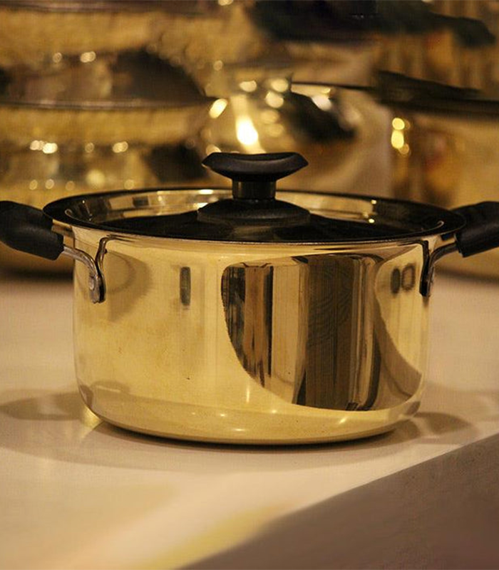 Golden Brass Top Stew Pan For Cookware & Kitchen Utilities