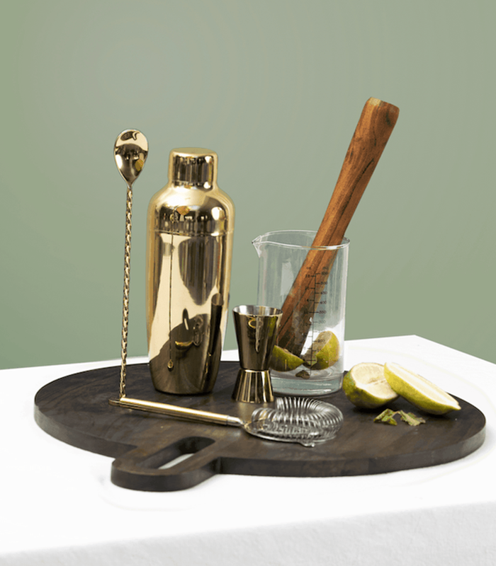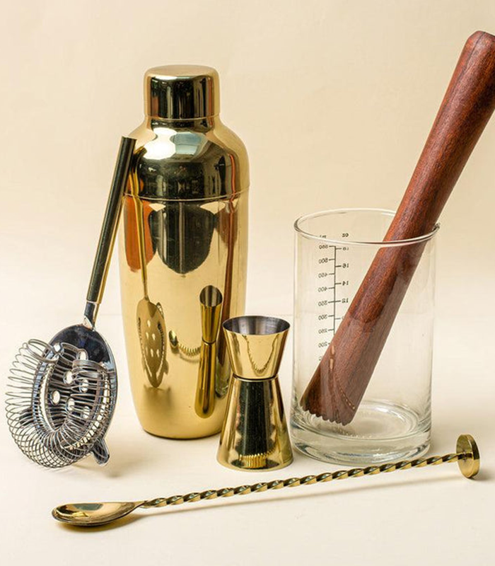 This 6 piece set is the perfect choice for your home bar, this set looks premium and luxurious along with being the ideal partner for making cocktails. The glass muddler with measuring lines is great for those who love adding fresh elements like oranges, kaffir lime or bitters to their drinks. The set consists of Cocktail shaker, Measurer, Strainer, Stirrer, Glass beacon, Wooden Press